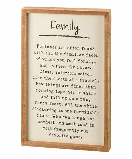 Demonstrate the importance of family with this box sign boasting a framed, inset design and a lovely message.