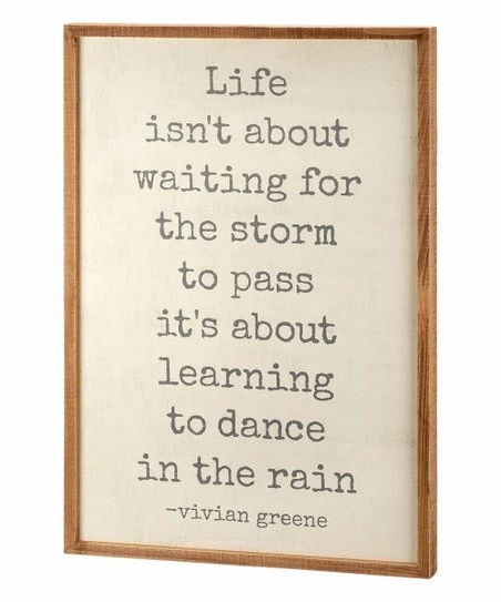 - Full graphic text: Life isn’t about waiting for the storm to pass. It’s about learning to dance in the rain. Vivian Greene.