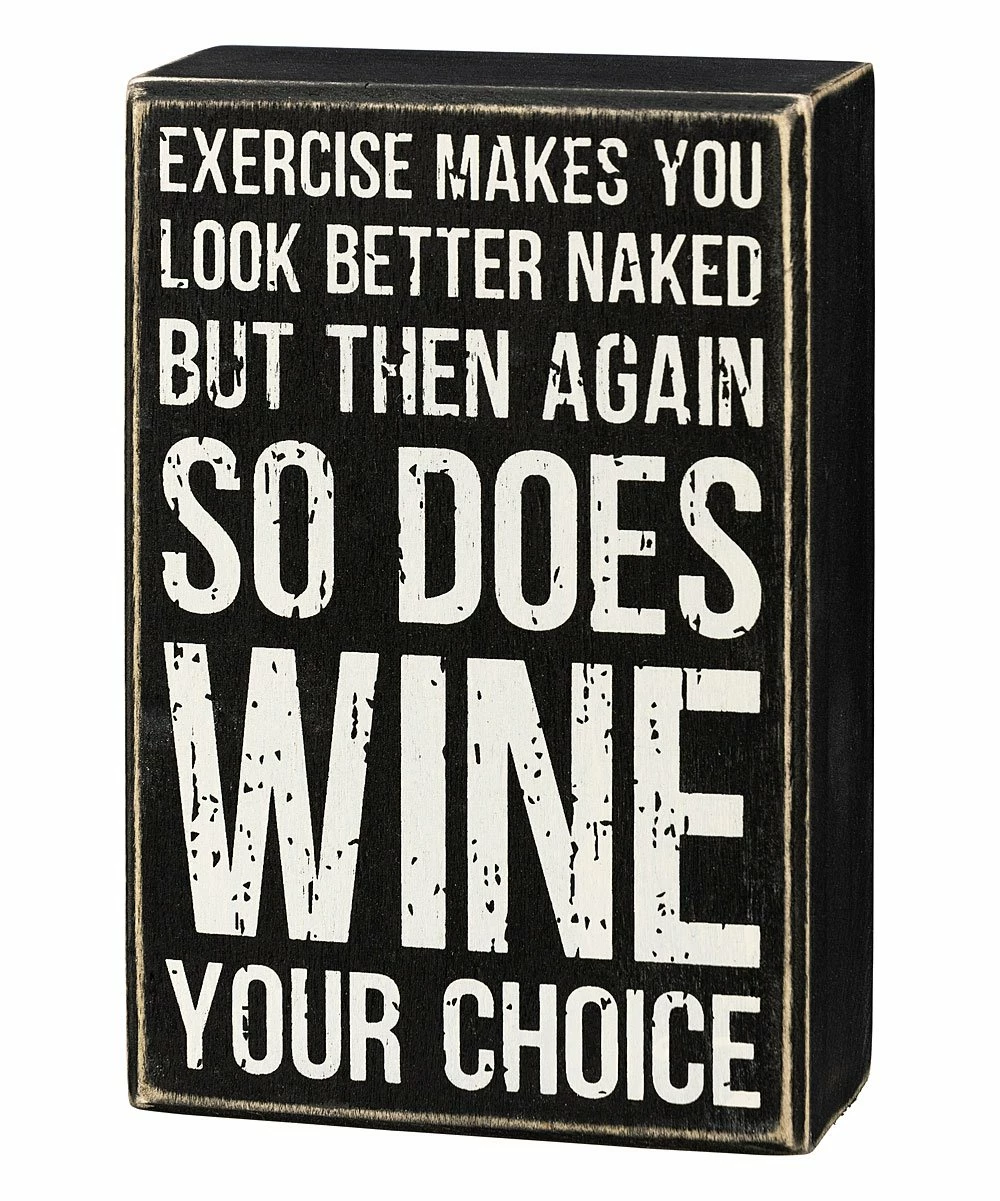 - Full graphic text: Exercise makes you look better naked, but then again so does wine, your choice.