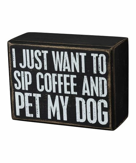 Decorate your space and add some light-hearted humor to your day with this wooden box sign sporting a sentimental slogan.
