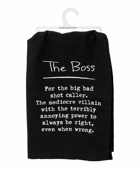 - Full graphic text: The boss. For the big bad shot caller. The mediocre villain with the terribly annoying power to always be right, even when wrong.