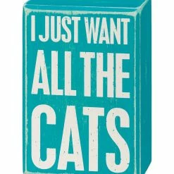 - Full graphic text (box sign): I just want all the cats.