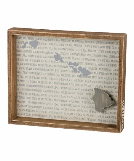 Pay homage to your favorite state with this box sign featuring a wood frame and distressed details.