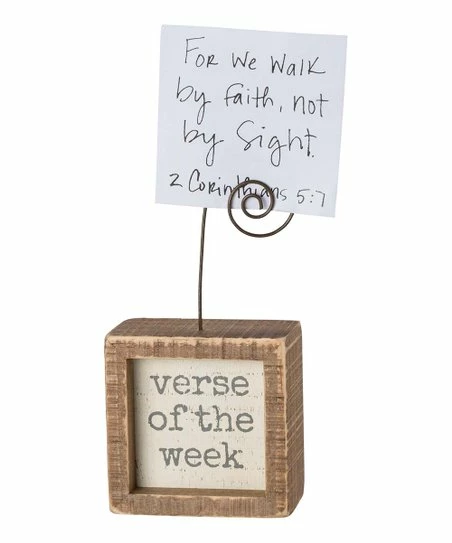 Wooden block with wire picture-holder you can use to display notes of Bible verses for each week’s contemplation.