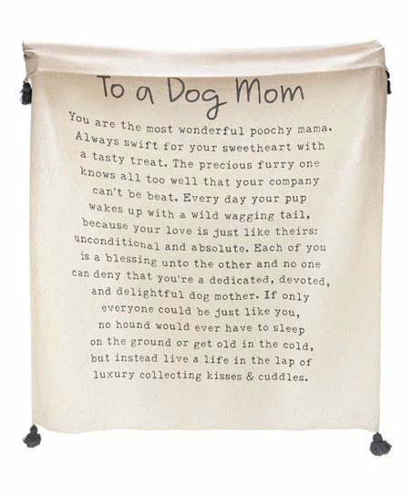 Tassel-adorned cotton throw with a heartfelt message from dog to mom, front and center.