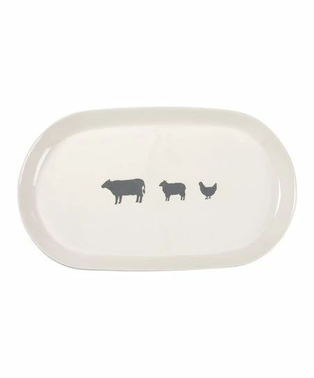 Bring some down-home charm to your place settings with this stoneware platter featuring a farm animal-inspired design.
