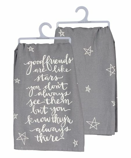 Wipe up stains and spills with this absorbent cotton dish towel decked out with an inspirational graphic sentiment.