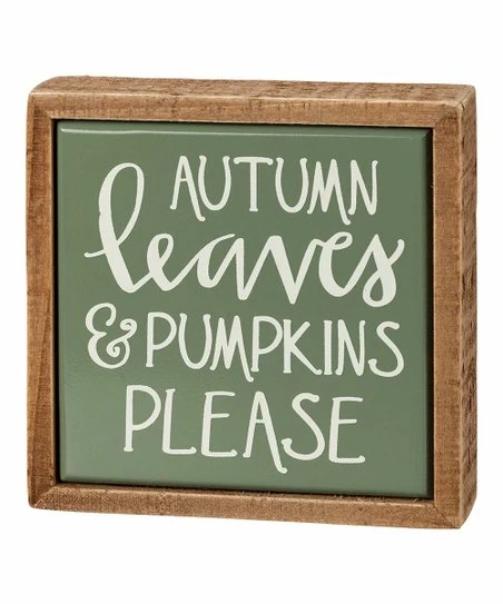 Add this printed wooden box sign as a seasonal accent to any shelf or sill.