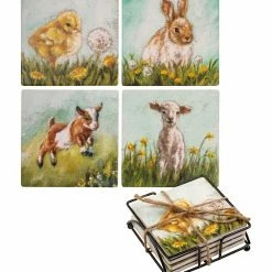 Bring farm-fresh flair to your living space with these coasters offering adorable animal designs.