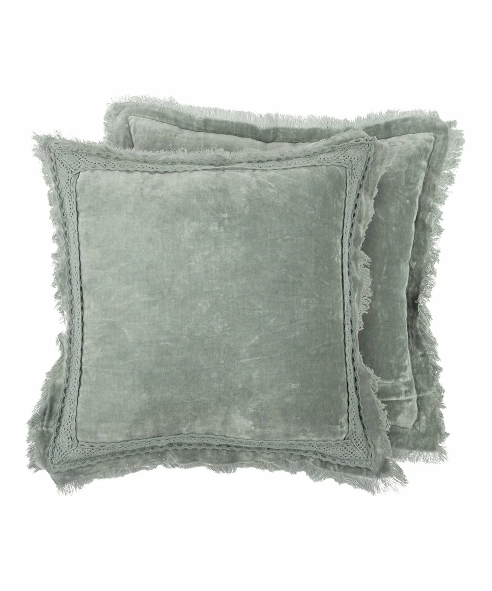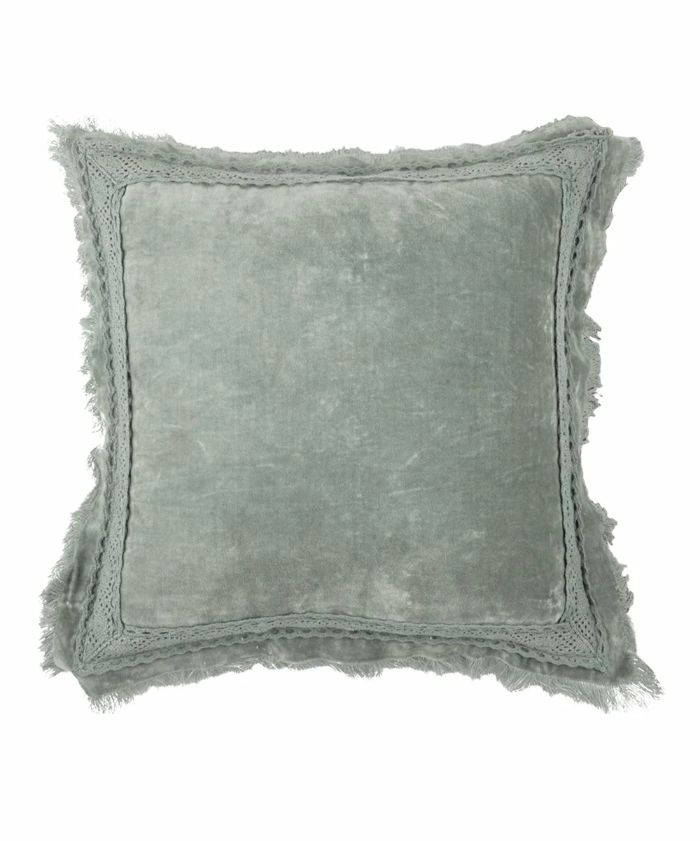 Throw pillow featuring soft velvet fabric and elegant lace detailing around the edges.