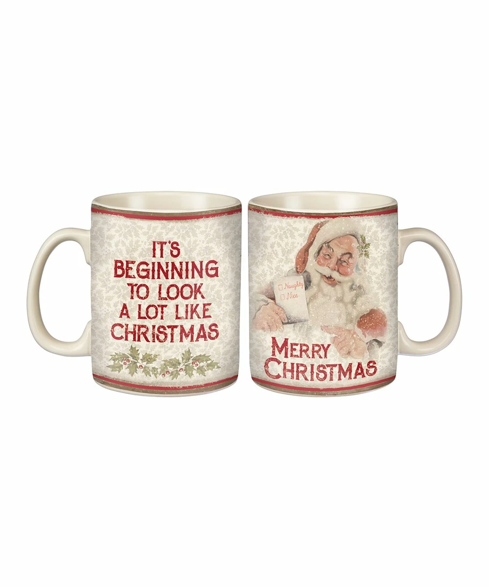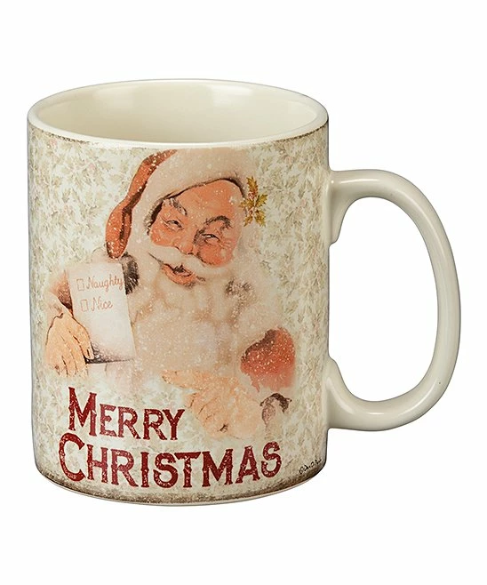 Sip hot cocoa in style with this sturdy mug sporting Old Nick himself and a season-invoking message.