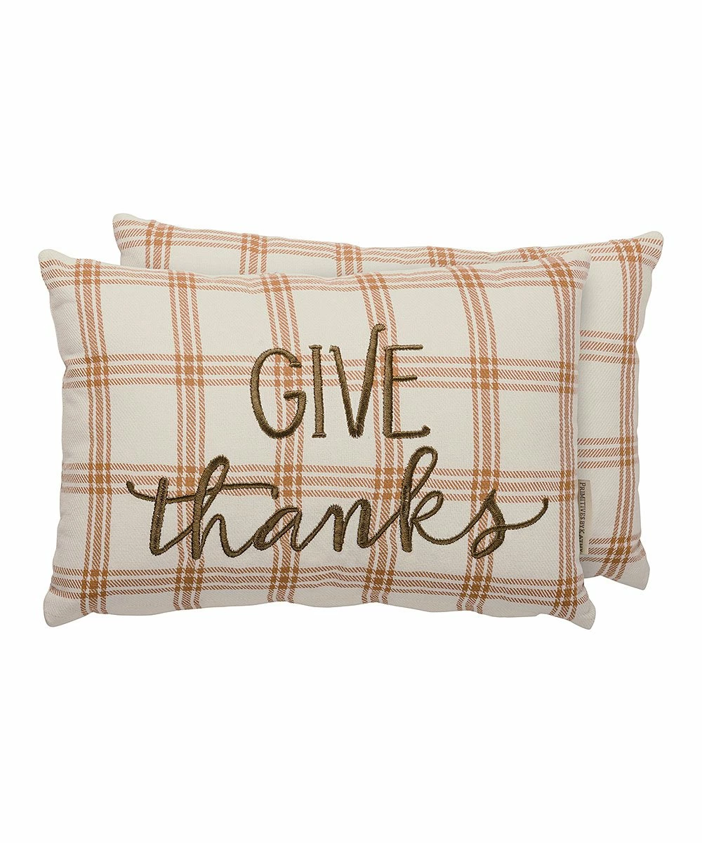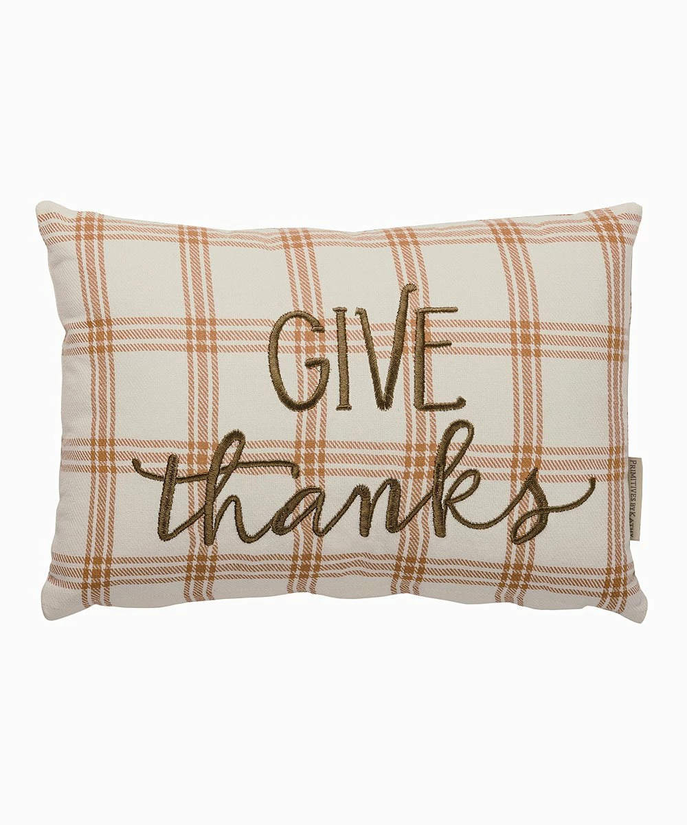 Add autumnal appeal to your sofa with this throw pillow’s plaid pattern and wholesome phrase.