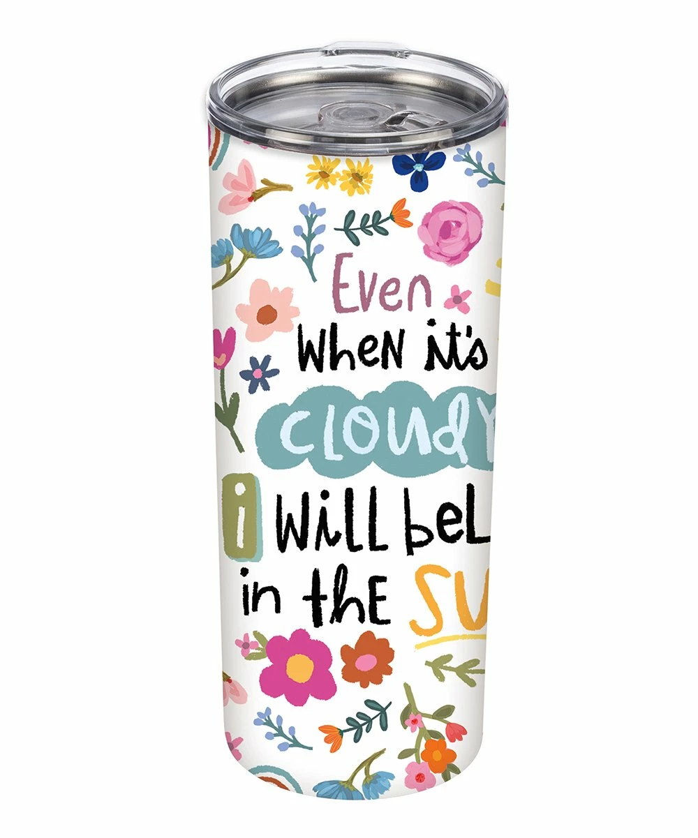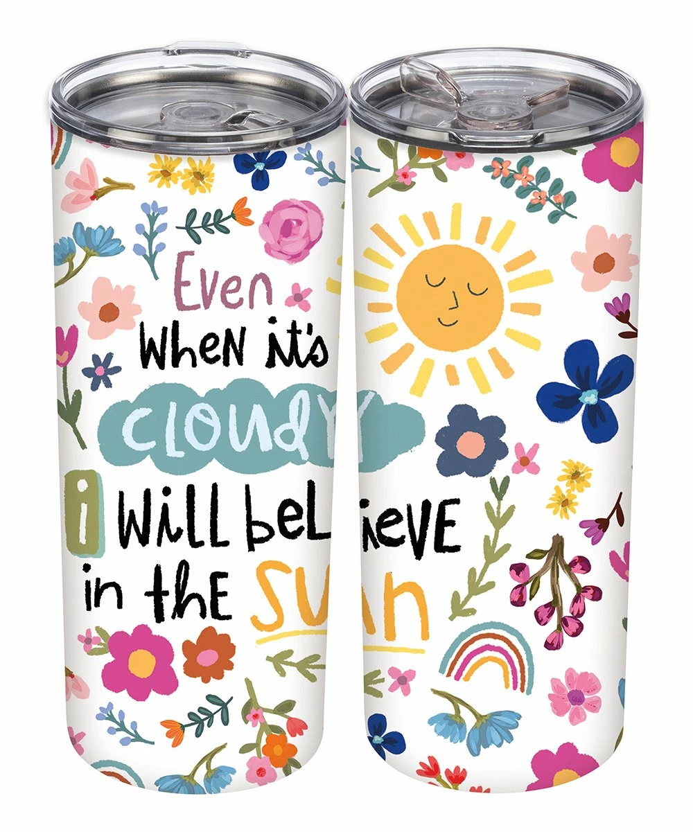 This tumbler features a positive message accompanied by sunny artwork.