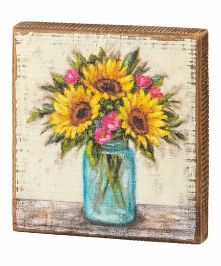 Bring country living a little bit closer to home with the bright yellow sunflower detail of this block sign.