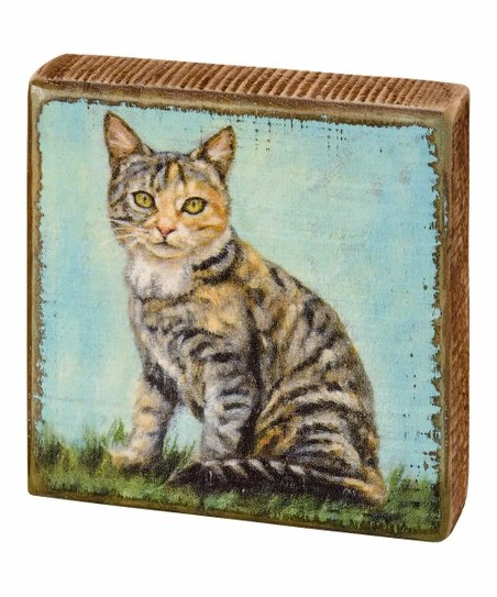 Adorned with a frisky tabby cat, this gorgeously detailed box sign enriches your wall or table space with a touch of rustic charm.