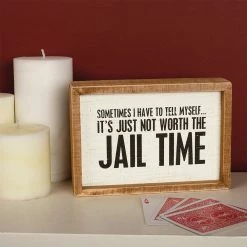 Add a bit of cheeky charm to your interior spaces with this rustic box sign crafted with a wooden inset design boasting a humorous message.