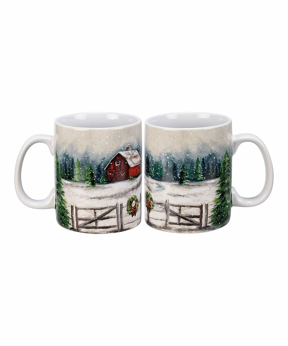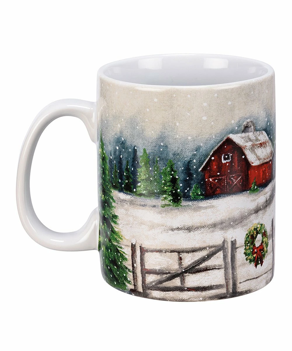 Sip your favorite warm beverage in this mug featuring a winter scene.