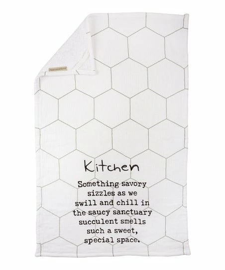 Add a fun touch to your kitchen collection with this cotton dish towel’s playful message.