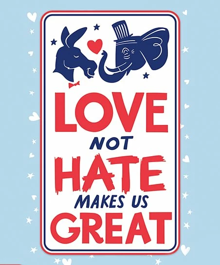 - Full graphic text: Love not hate makes us great.