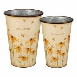 Whether you use them as homes for your plants or to corral clutter, these metal buckets add a cheerful element to interiors with their floral motif and inspirational typography.